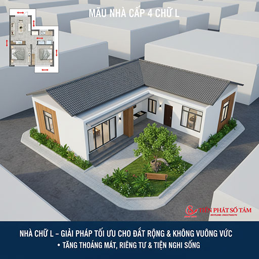 4. Mẫu nhà cấp 4 chữ L – Giải pháp cho đất không vuông