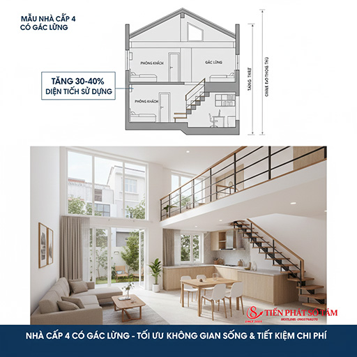 3. Mẫu nhà cấp 4 có gác lửng – Tăng diện tích sử dụng thông minh