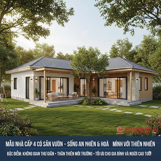 6. Mẫu nhà cấp 4 có sân vườn – Không gian sống thư giãn