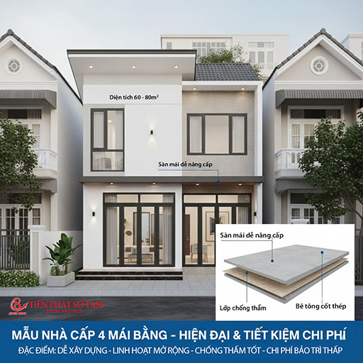 2. Nhóm mẫu nhà cấp 4 mái bằng – Hiện đại, tối ưu chi phí