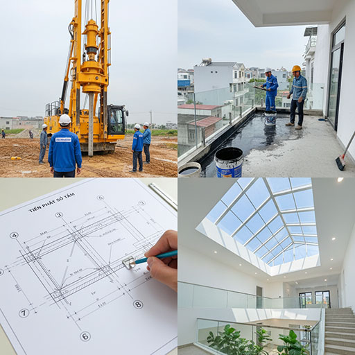 - Gia cố móng: Ép cọc hoặc gia cố bằng cừ tràm/cọc khoan nhồi nếu cần nâng tầng.