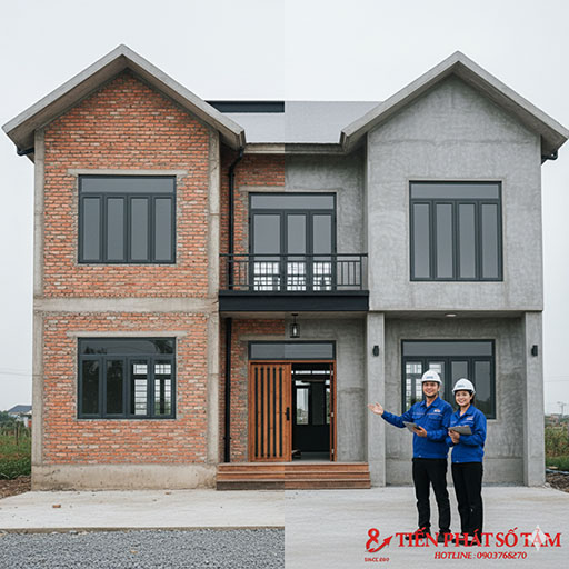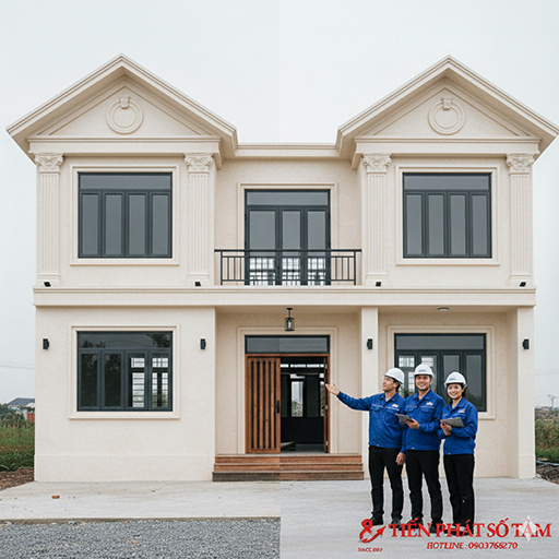 - Cửa & khung: Nhôm kính hệ PMA/Xingfa cho mặt tiền; cửa gỗ công nghiệp chống ẩm cho trong nhà.