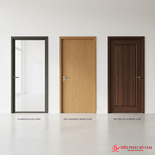 - Tùy chọn: cửa nhôm kính (giá rẻ → trung bình), cửa gỗ công nghiệp, gỗ tự nhiên (đắt).