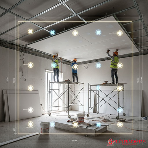 - Trần thạch cao + khung: ~120.000 – 250.000 VNĐ/m²
