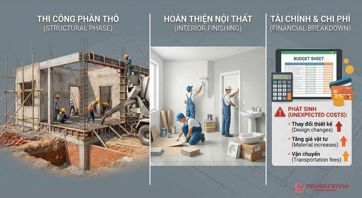 - Chiếm 40–50% còn lại, tùy vật liệu và mức hoàn thiện.