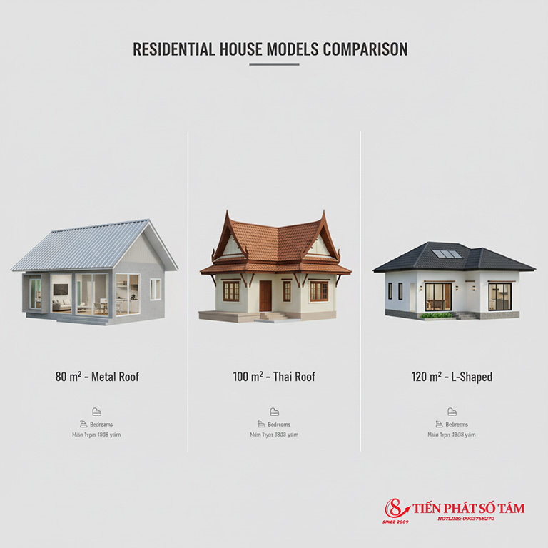 | Nhà cấp 4 mái thái | 100 m² | Phòng ngủ 3, mái thái chống nóng | 650 – 700 triệu VNĐ |