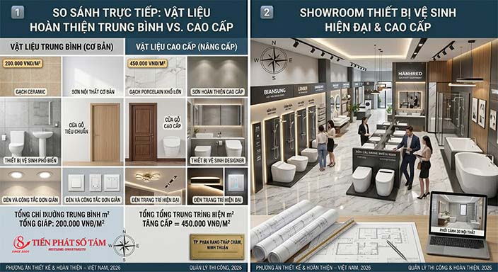 Đây là hạng mục dễ phát sinh nhất vì gia chủ thường nâng cấp vật liệu giữa chừng.