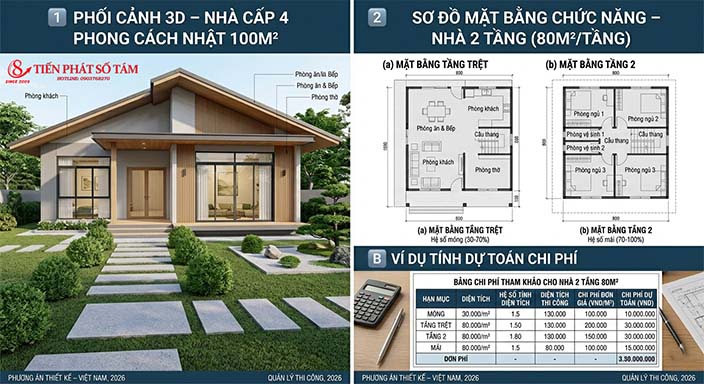 Trường hợp 1: Chi phí xây nhà cấp 4 100m2
