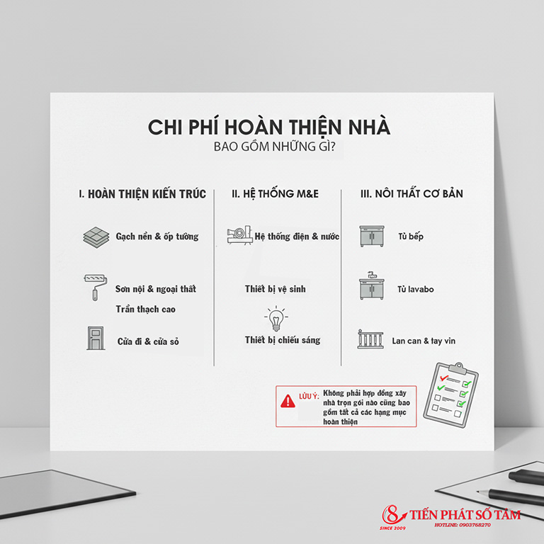 ⚠️ Không phải hợp đồng xây nhà trọn gói nào cũng bao gồm tất cả nội dung trên.
