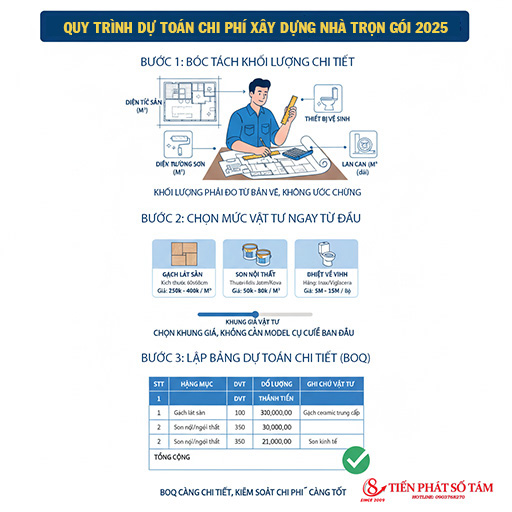 3. Quy trình lập dự toán chi phí hoàn thiện nhà trọn gói (chuẩn 2025)