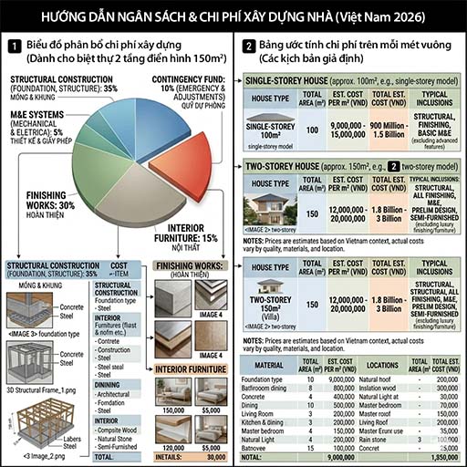 Xây nhà là một trong những quyết định tài chính lớn nhất của đời người. Đặc biệt với người xây nhà lần đầu, nếu không chuẩn bị kỹ, chi phí phát sinh có thể tăng thêm 10–30%, tương đương hàng trăm triệu đồng.