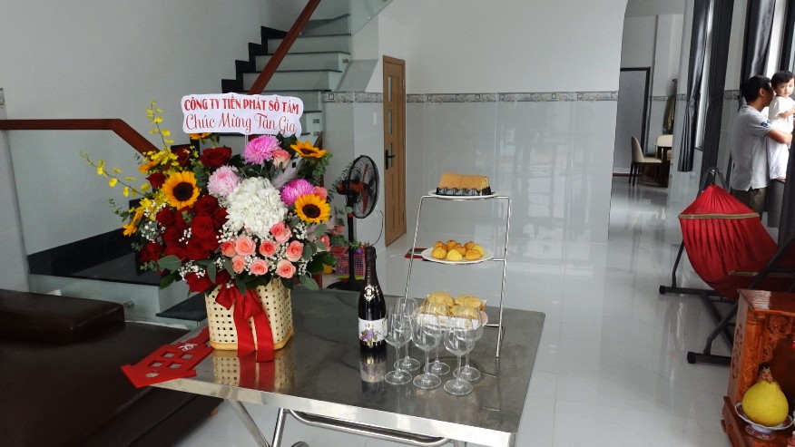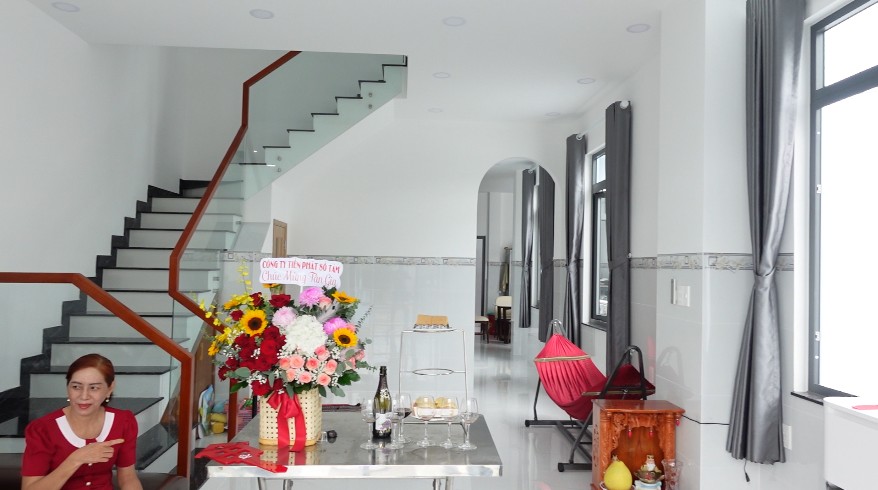 Buổi lễ bàn giao diễn ra trong không khí ấm áp và thân tình. Đại diện công ty đã trao hoa, quà lưu niệm và chìa khóa tượng trưng cho gia chủ, đánh dấu thời khắc chính thức khép lại giai đoạn xây dựng và mở ra hành trình mới – hành trình tận hưởng cuộc sống trong ngôi nhà mới. Niềm vui rạng ngời trên gương mặt chú Lượng, cô Loan và gia đình chính là món quà tinh thần lớn lao nhất mà Tiến Phát Số Tám nhận được.