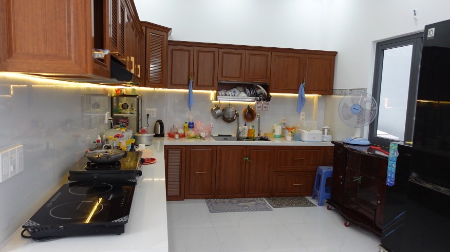 Nhìn lại thành quả hôm nay, ngôi nhà hiện lên khang trang, sáng sủa và tiện nghi. Phòng khách được thiết kế rộng rãi, sang trọng, đón ánh sáng tự nhiên tràn ngập. Không gian bếp ấm cúng với hệ tủ gỗ chắc chắn, gọn gàng, là nơi cô Loan có thể chuẩn bị những bữa cơm sum vầy cho cả gia đình. Phòng ngủ được thiết kế thoải mái, hiện đại, mang lại sự riêng tư và thư giãn sau một ngày dài. Khu vực sân thượng thoáng mát, thích hợp để trồng cây xanh hoặc tổ chức những buổi tiệc gia đình ấm áp.