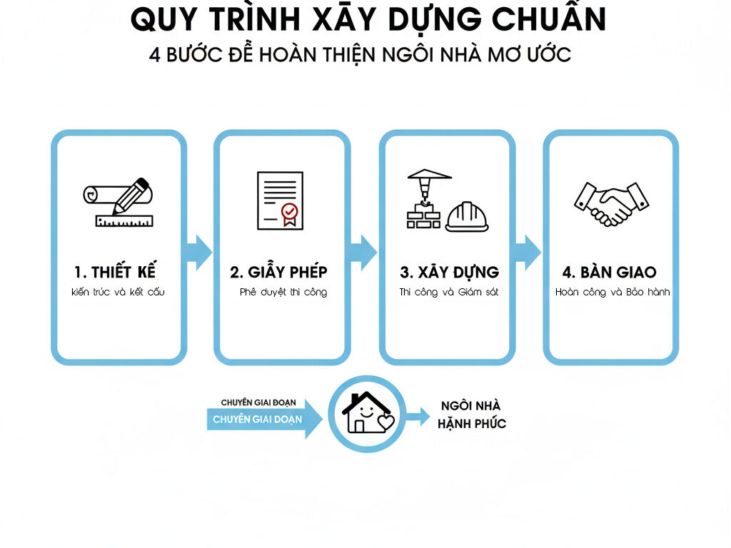 Nhà thầu lo mọi bước, bạn chỉ duyệt thiết kế và nghiệm thu. Rất phù hợp với chủ nhà bận rộn.