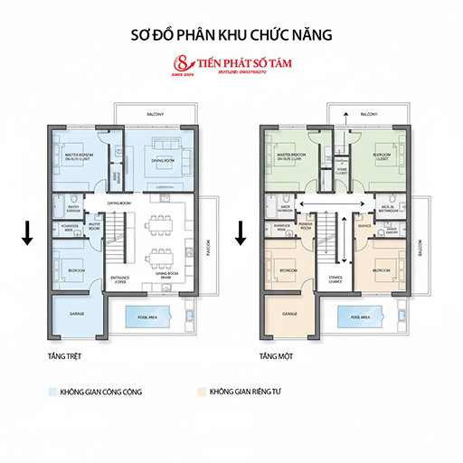 - Sự tách bạch rõ ràng giữa không gian sinh hoạt – nghỉ ngơi – phụ trợ
