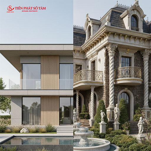 - Ngôn ngữ kiến trúc nhất quán (hiện đại, tân cổ điển, mái Nhật…)