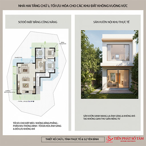 4. Nhóm 3: Mẫu nhà 2 tầng chữ L – Giải pháp cho đất không vuông
