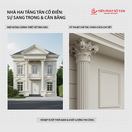 So với mẫu biệt thự đẹp, nhà 2 tầng tân cổ điển: