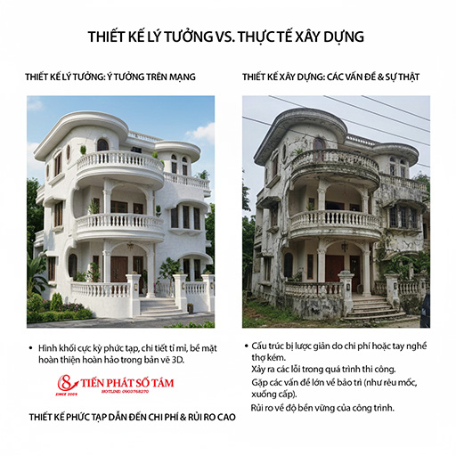 Từ kinh nghiệm xây nhà thực tế, các mẫu sau thường “đẹp trên mạng nhưng ít ngoài đời”: