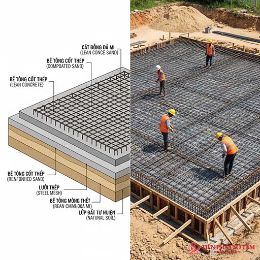 • Lót cát, đá dăm, hoặc bê tông lèn (tùy thiết kế).