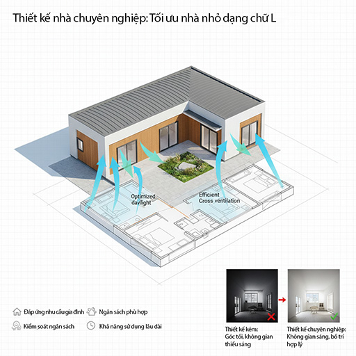 Mẫu nhà chữ L là lựa chọn rất phổ biến vì: