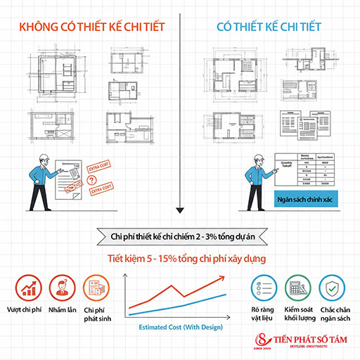 📌 Thực tế, chi phí thiết kế chỉ chiếm 2–3%, nhưng quyết định đến 100% chi phí xây dựng phía sau.