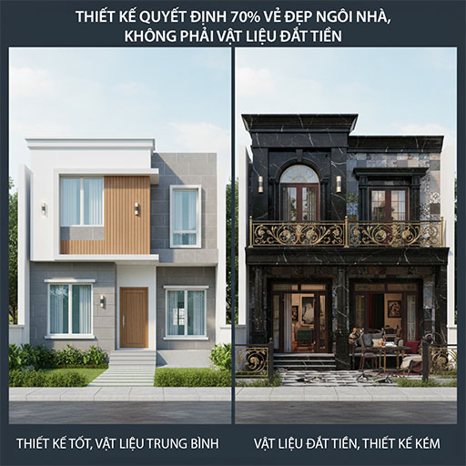 👉 Thiết kế mới là yếu tố quyết định thẩm mỹ, còn vật liệu chỉ là công cụ.