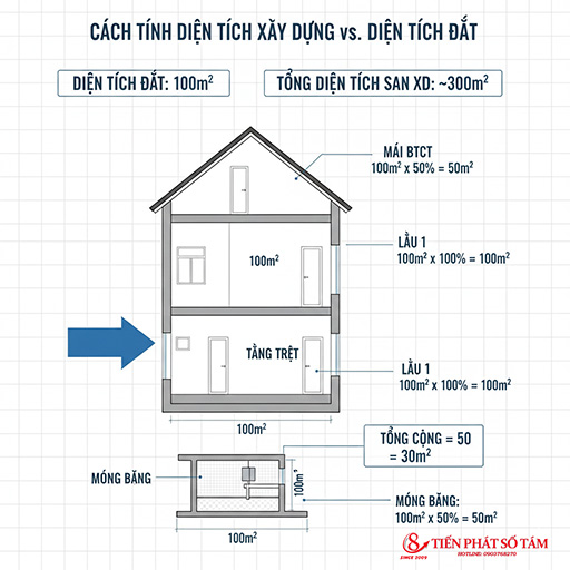 Muốn biết xây nhà 100m2 hết bao nhiêu tiền, trước tiên bạn phải hiểu diện tích xây dựng ≠ diện tích đất.
