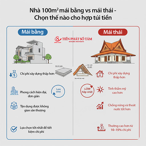 5. Nhà 100m² mái bằng vs mái thái – Chọn thế nào cho hợp túi tiền?