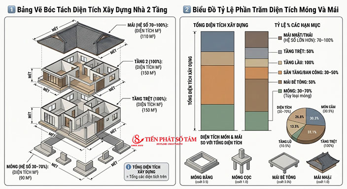 • Móng: 30% – 70% diện tích sàn (tùy loại móng)