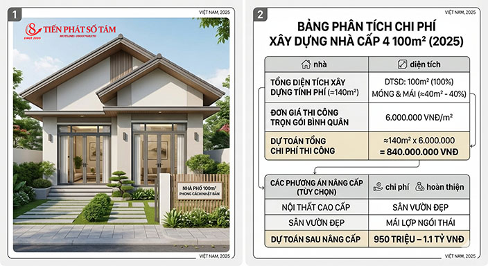 Đây cũng là mức phổ biến khi tính chi phí xây nhà cấp 4 100m2 năm 2026.